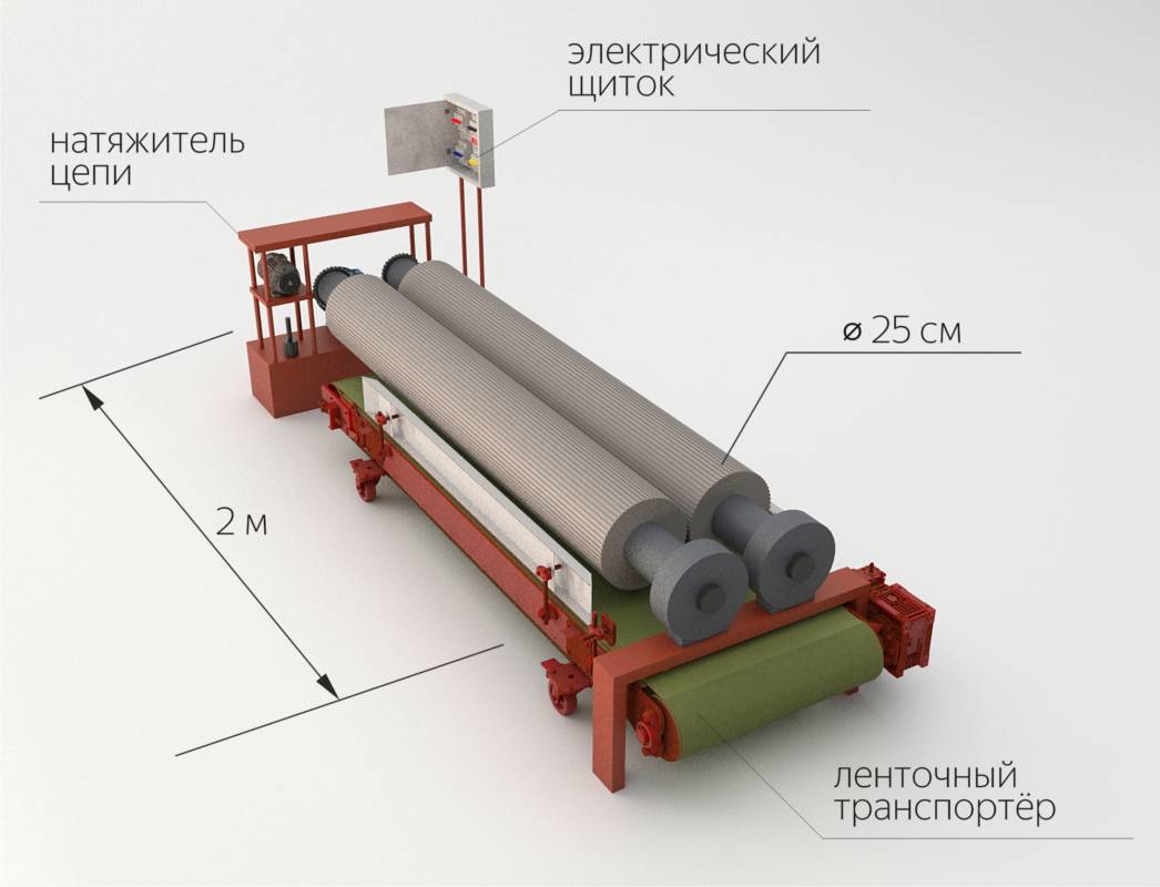• Рабочие валы: 2 шт., длина – 2000 мм, диаметр – 300 мм.